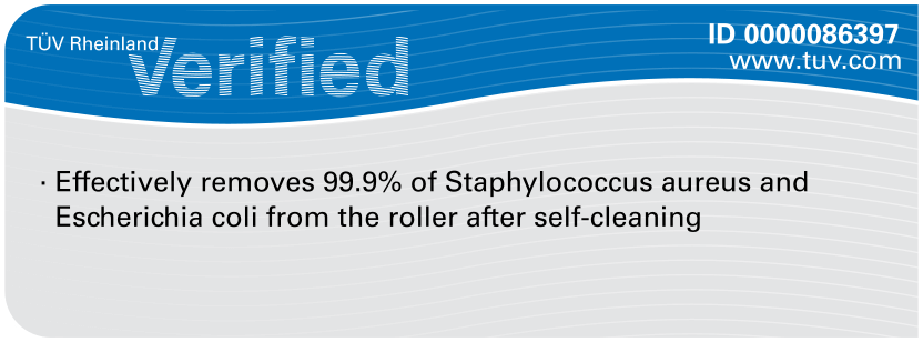 4. Based on testing carried out by TUV Rheinland on Staphylococcus aureus and Escherichia coli under default self-cleaning mode, over 99.9% of bacteria on the roller are effectively removed. Test Report number: 244555550b3 001. Actual results may vary according to the home environment.