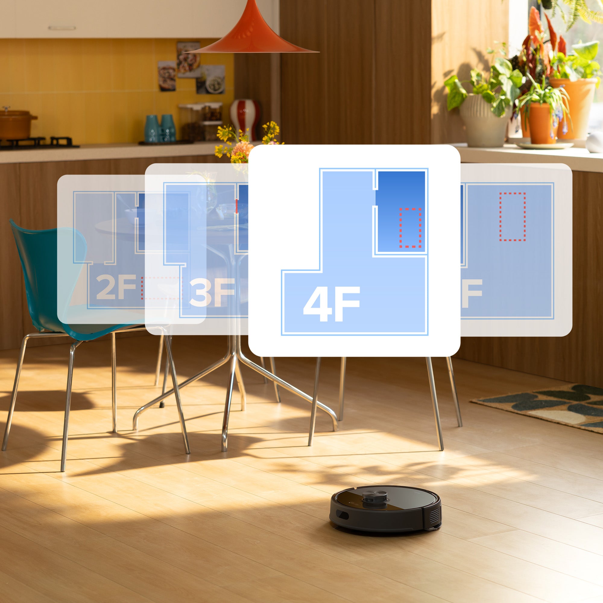 Perfect for homes with more than one floor, the multi-level mapping system automatically recognizes different levels—just place the robot down, and it does the rest. No extra docks, no manual level selection in the app. Supports up to four levels.