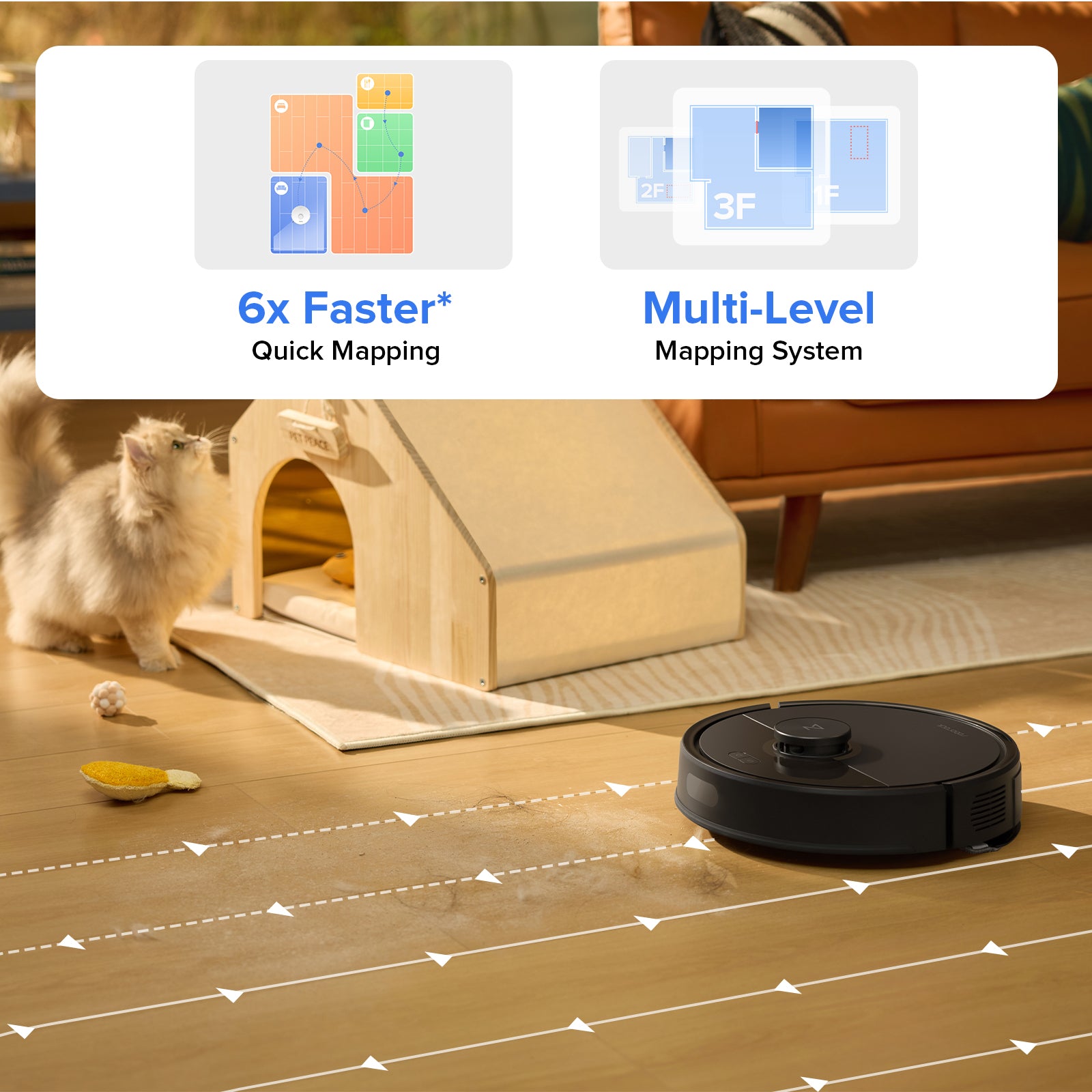 LiDAR-based navigation system scans 360° and creates detailed maps simultaneously for the most efficient route navigation. It also remembers up to 3 maps for multiple floors.