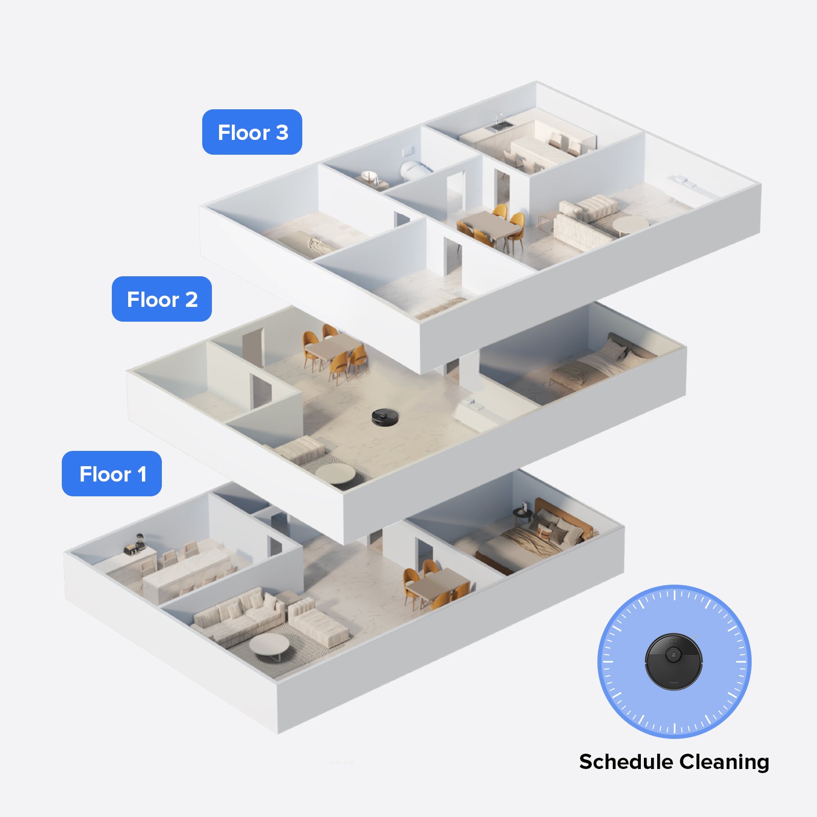 Multi-Level Mapping supports up to 3 maps, allowing you to map multiple floors for a tailored cleaning experience.