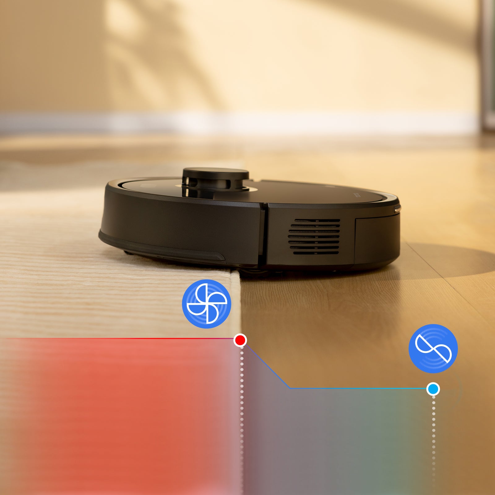 Automatically detects (or set in the app) carpeted areas and increases suction power for deeper cleaning and more effective dirt removal, ensuring a fresher, cleaner home.
