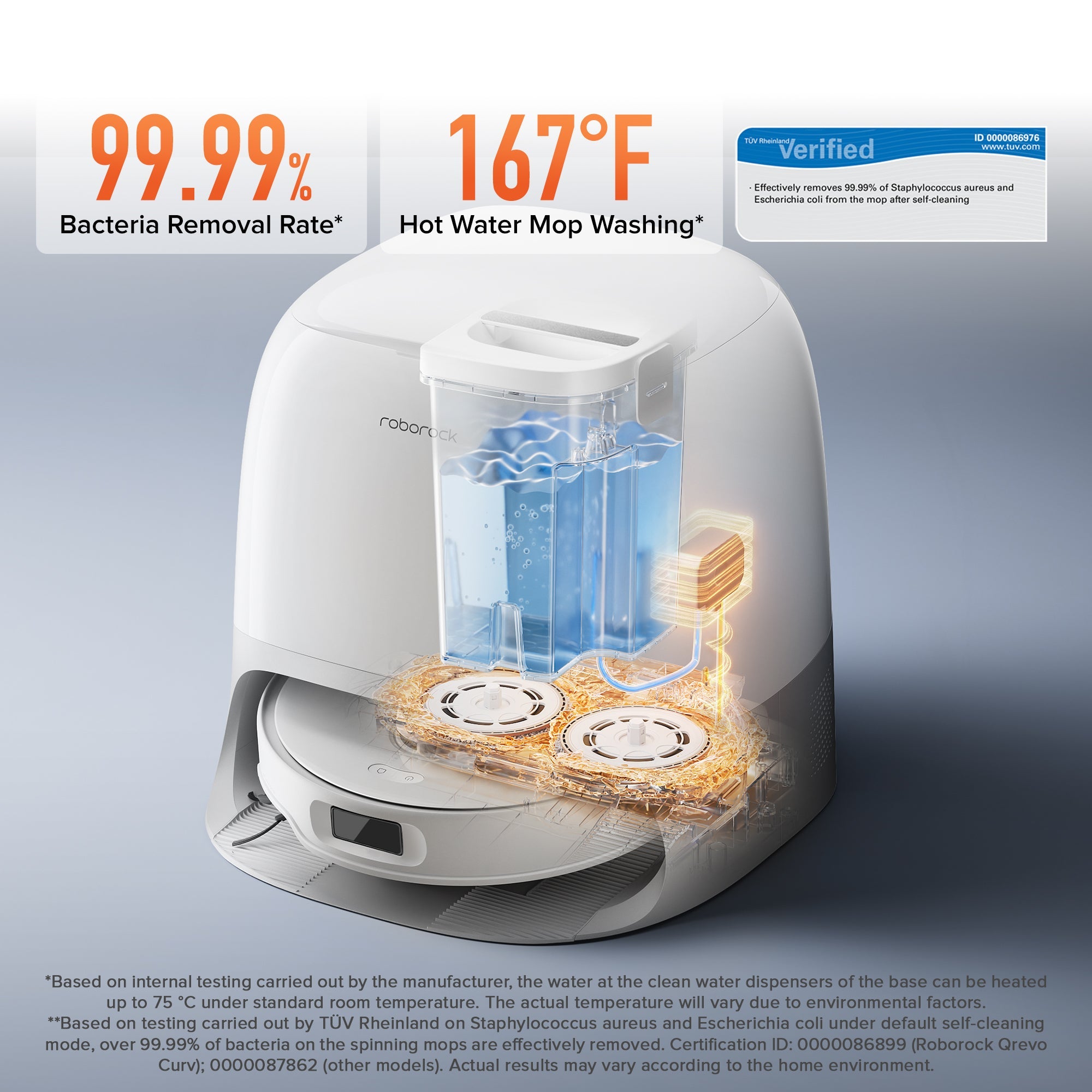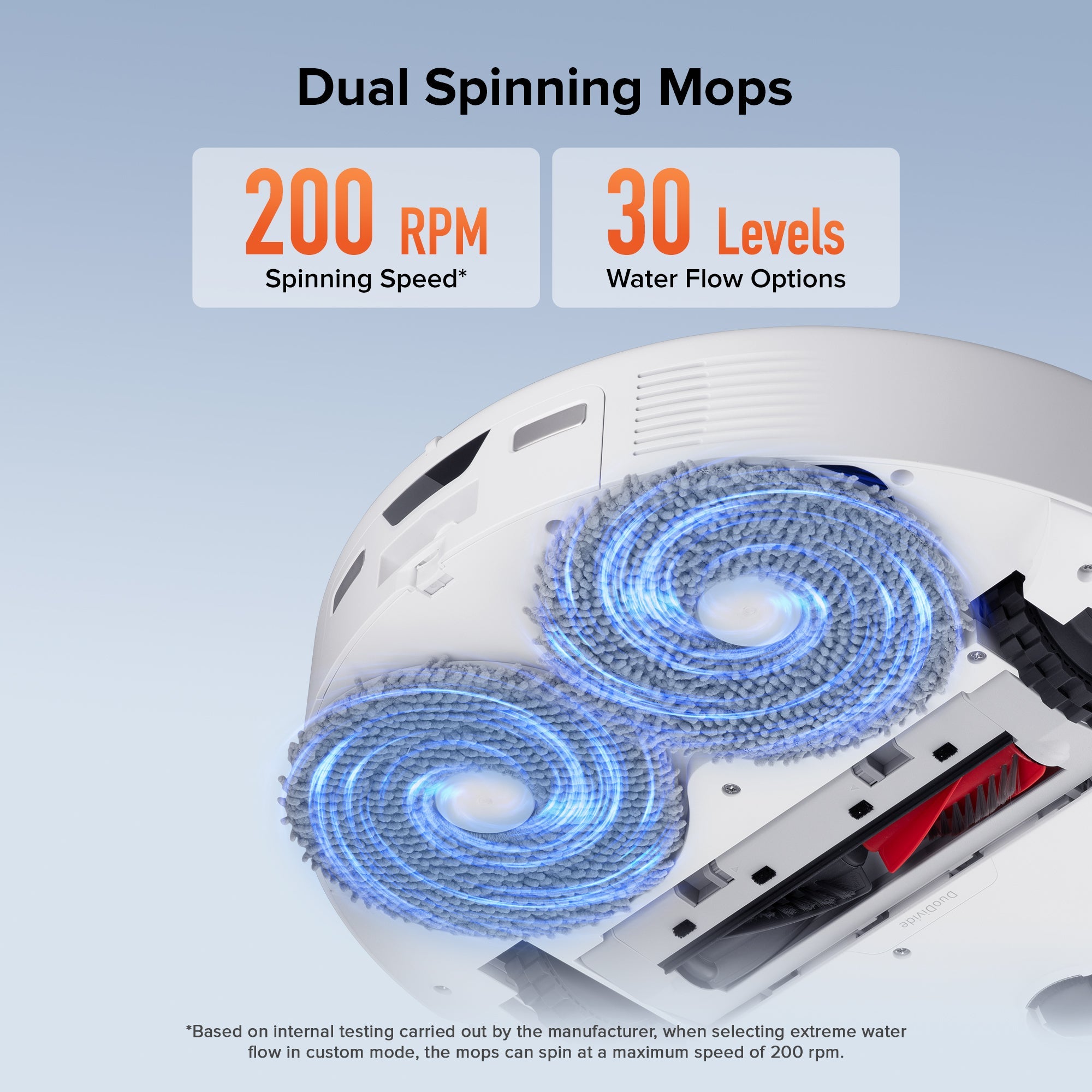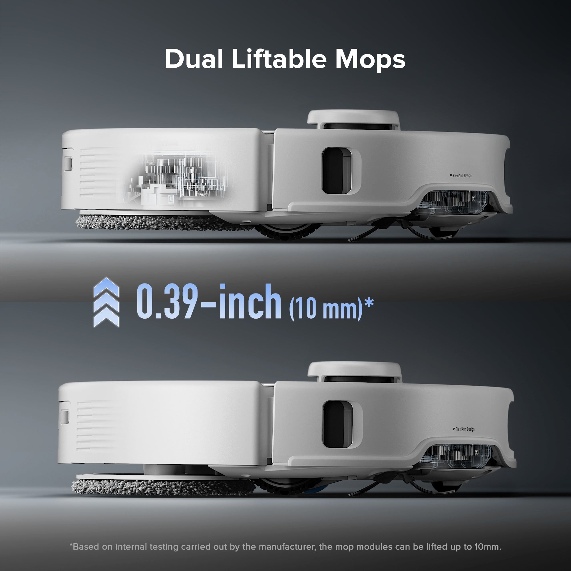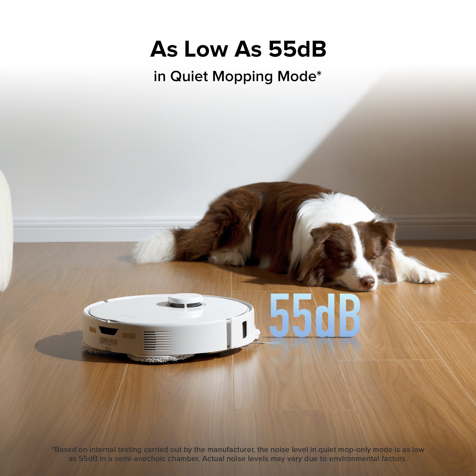 *Based on internal testing carried out by the manufacturer, the noise level in quiet mop-only mode is as low as 55dB in a semi-anechoic chamber. Actual noise levels may vary due to environmental factors.