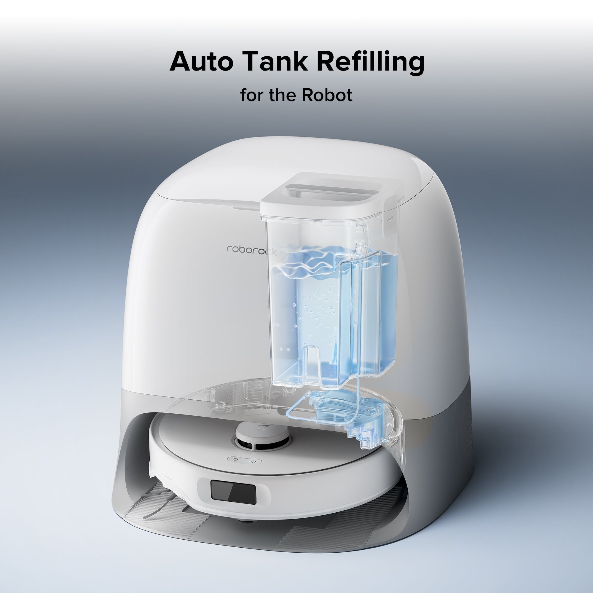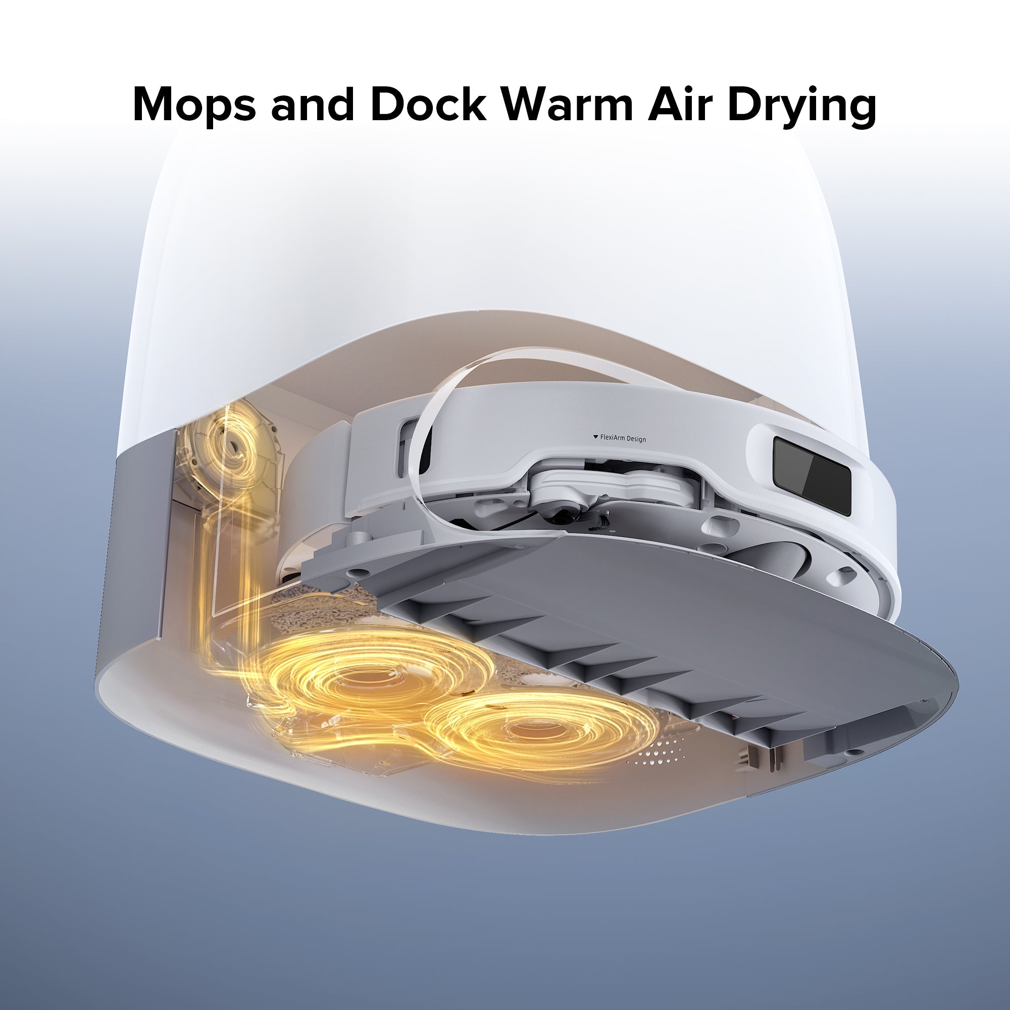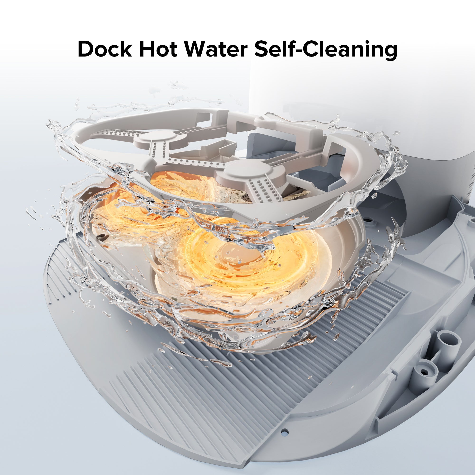 6. Multifunctional dock with 75°C hot-water mop washing, auto-refilling of the onboard water tank, dustbin auto-emptying, and warm air drying for the mop cloths.