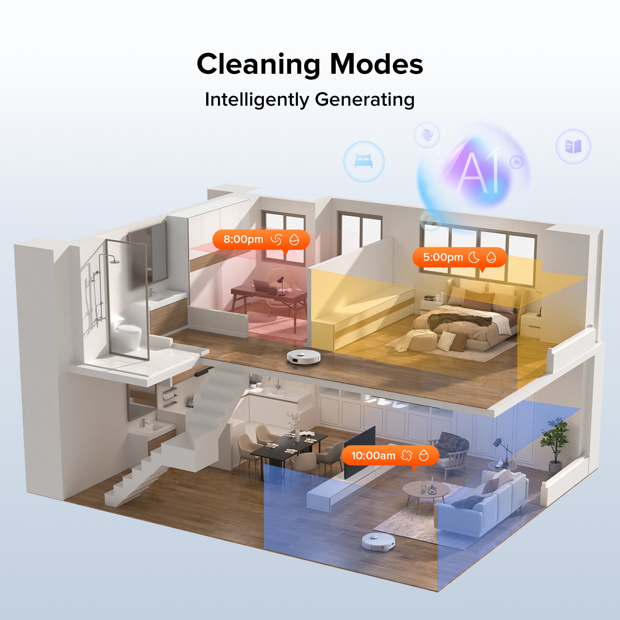 Tailored cleaning modes to your habits, room types, and floor materials, Roborock SmartPlan™ intelligently generates cleaning modes, and adjusts settings and preferences automatically. Enjoy worry-free cleaning with no need for manual mode adjustments.