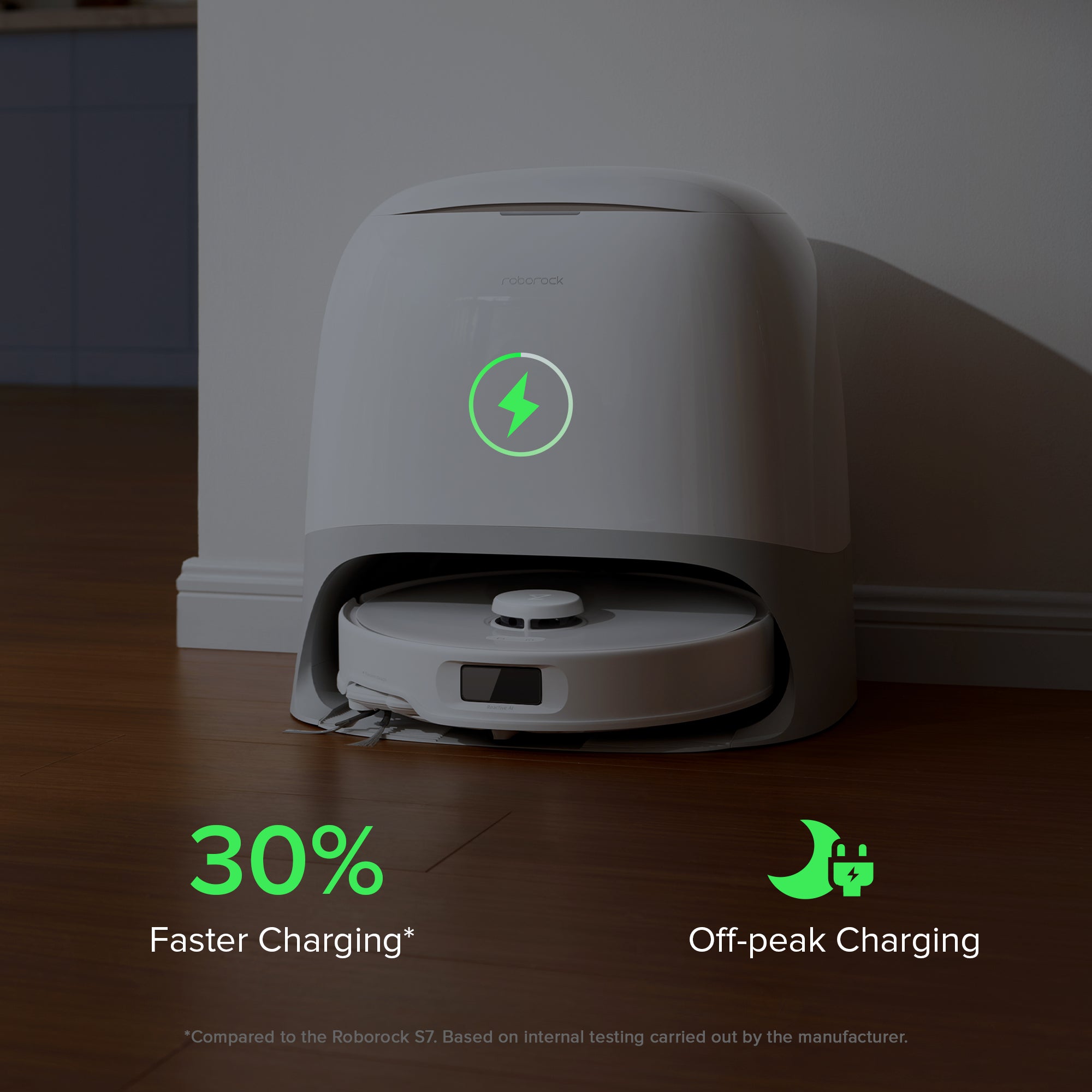 *Compared to the Roborock S7. Based on internal testing carried out by the manufacturer, Actual results may vary according to the home environment.